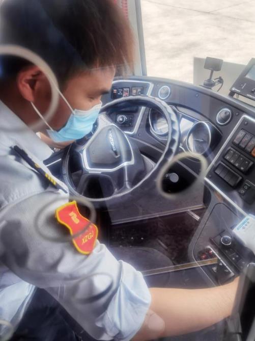 新區(qū)公司1780車駕駛員白延奇駕駛的19路線,由銅山新區(qū)總站發(fā)往徐州火車站,全程接近30.5公里,途徑居民區(qū)、學(xué)校眾多,每天要跑3趟,6個單程,不堵車的時候一個單程需要一個小時。“由于工作的特殊性,即便天氣再熱我們也不敢多喝水,早晚高峰堵車至少得1個多小時才能回到主站,只有到終點站才能多喝幾口水,抓緊時間上個廁所?!?/span>駕駛員白延奇這樣說道。為了給市民乘客提供溫馨、舒適的車廂環(huán)境,每天朝陽還未升起,白延奇就到達停車場,檢查車輛狀況、擦拭發(fā)動機、刷洗輪胎、打掃車輛衛(wèi)生,在確?!拔鍍粢涣痢钡耐瑫r,對車廂進行全面消毒,不一會,白延奇的額頭就布滿了汗珠,身上的行業(yè)服早已濕透,緊緊地貼在皮膚上。