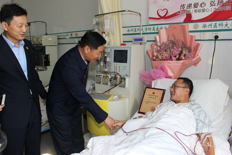 自7月底接到通知的這段時(shí)間,鄭剛一直積極配合著,希望保持最佳的身體狀態(tài)進(jìn)行捐獻(xiàn)。他努力克制自己,戒煙戒酒,鍛煉身體,增加高營(yíng)養(yǎng)的飲食調(diào)理。喝不慣牛奶的他甚至強(qiáng)迫著自己一天喝兩包奶。國(guó)慶節(jié)幾天,他突然感冒發(fā)低熱,竟忍著沒敢吃藥……鄭剛所在的單位也給予了大力的支持和配合,10月25日入院,徐州公交為他舉辦了隆重的歡送儀式,董事長(zhǎng)、總經(jīng)理杜紅軍等領(lǐng)導(dǎo)給他送來(lái)了慰問(wèn)金,安排好他的休息時(shí)間。