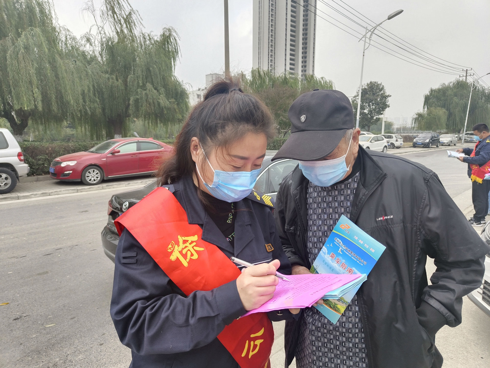 志愿者身穿干凈整潔的行業(yè)服,佩戴紅綬帶,在西苑車(chē)場(chǎng)宣傳文明乘車(chē)出行,引導(dǎo)市民有序乘車(chē)、文明讓座、綠色出行,讓市民了解選擇公共綠色交通工具出行的重要性,并協(xié)助乘客使用雙碼乘車(chē),鼓勵(lì)更多市民參與到公交出行周的活動(dòng)中去。
