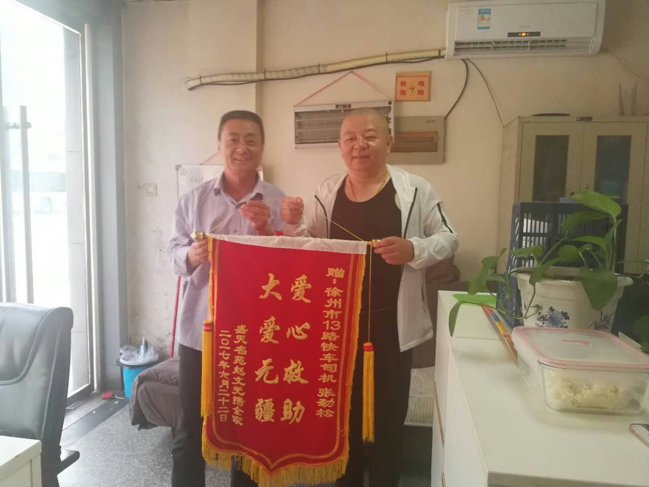 621日下午,京徐公司服務(wù)熱線接到李女士的求助電話,稱其6歲女兒在浦發(fā)銀行乘坐13路附線前往民安園,可是一直沒有等到女兒,十分著急。車隊(duì)工作人員立即幫助尋找女孩,不久,終于得到女孩的消息。原來,孩子誤將13路當(dāng)做13路附線,駕駛員張勁松了解情況后,在站臺處停下車輛,與孩子家長取得聯(lián)系,告訴家長放心。到達(dá)唐溝后,為了安撫孩子,給孩子買來零食,晚上6點(diǎn)50車輛到達(dá)西苑,女孩終于回到媽媽身邊,第二天下午,女孩父親送來錦旗,感謝張勁松的熱情幫助。