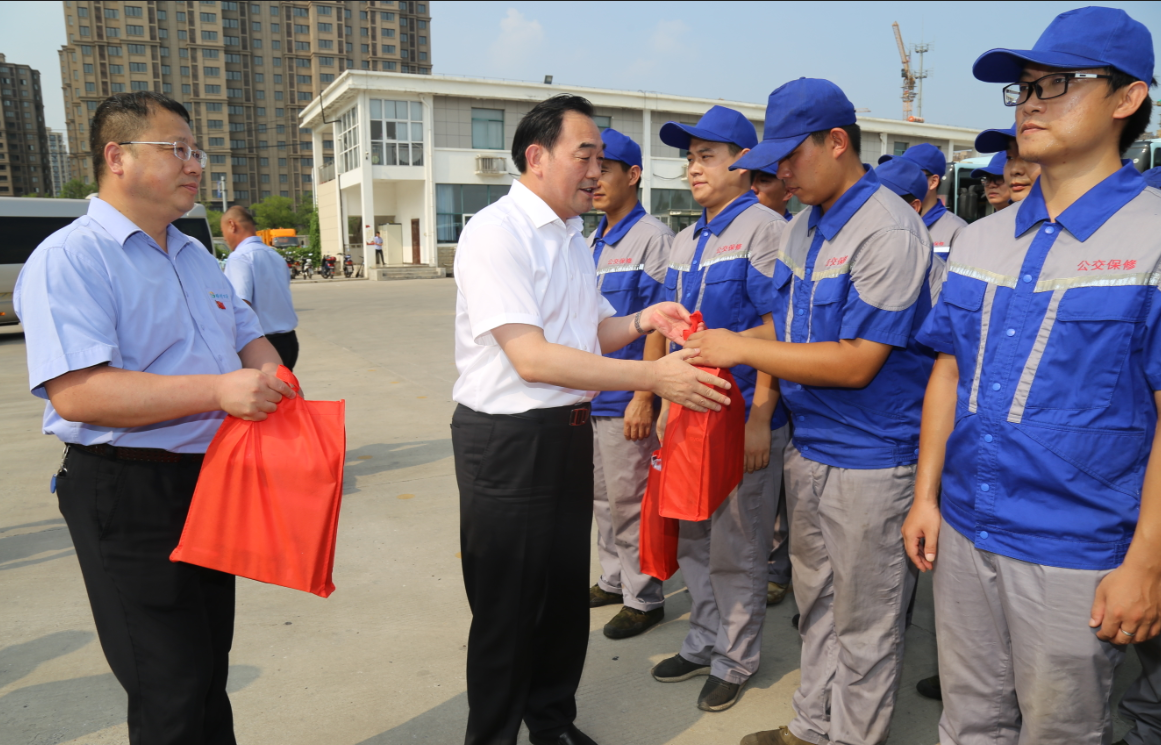 在烈日下的公交郭莊停車場(chǎng),周鐵根書記看到堅(jiān)守崗位的公交員工們汗流浹背,親切地上前與公交駕駛員、修理人員等一線員工一一握手?!按蠹倚量嗔耍「兄x你們!”他對(duì)廣大公交員工為保障全市人民高溫天氣正常出行所付出的辛勤勞動(dòng)表示充分肯定,又將洗發(fā)水、毛巾、肥皂等降暑物品,以及《安全生產(chǎn)知識(shí)職工普及讀本》等書一一送到公交員工手中,叮囑有關(guān)負(fù)責(zé)人,要多愛護(hù)、關(guān)心一線職工,切實(shí)做好防暑降溫措施,為公交員工創(chuàng)造好的工作條件,切實(shí)維護(hù)廣大職工的安康權(quán)益,確保高溫天里職工的身體健康和安全生產(chǎn),讓職工安全度夏、清涼度夏,真正感受到黨和政府的關(guān)懷、工會(huì)組織的關(guān)心和社會(huì)各界的關(guān)愛。他還關(guān)心地叮囑公交員工們要?jiǎng)谝萁Y(jié)合,做好高溫防護(hù),保重身體,杜絕疲勞駕駛,確保安全行車,并希望大家更好地堅(jiān)守崗位、服務(wù)群眾,為保障市民安全有序的出行環(huán)境,打造我市優(yōu)化營(yíng)商環(huán)境、營(yíng)造文明城市良好氛圍做出更大的貢獻(xiàn)。